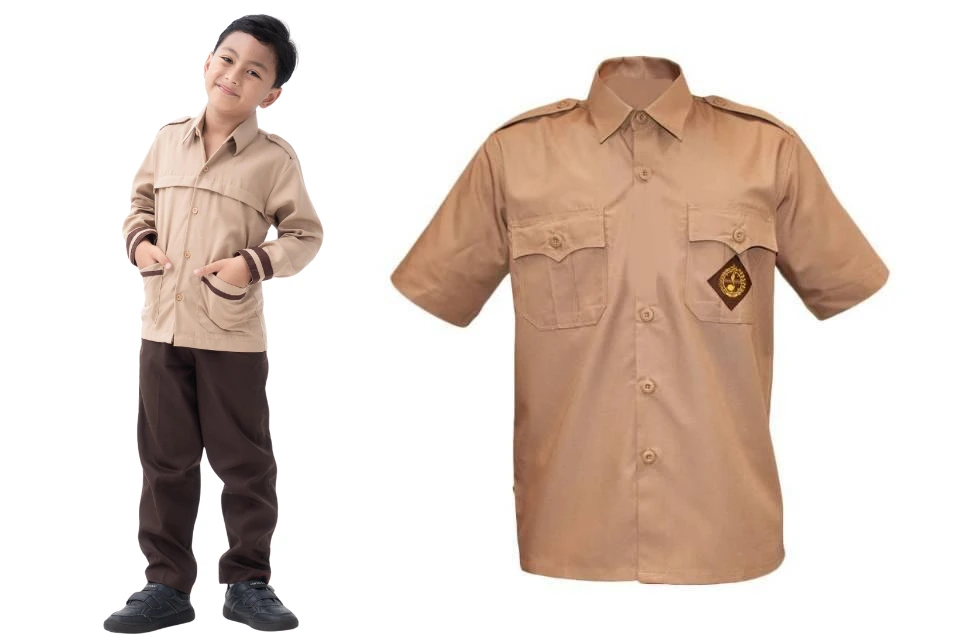 Seragam pramuka coklat muda sesuai standar nasional dengan logo resmi. Bahan Toyobo yang kuat, tidak mudah luntur, dan nyaman dipakai untuk kegiatan indoor maupun outdoor. Tersedia untuk semua jenjang pendidikan.