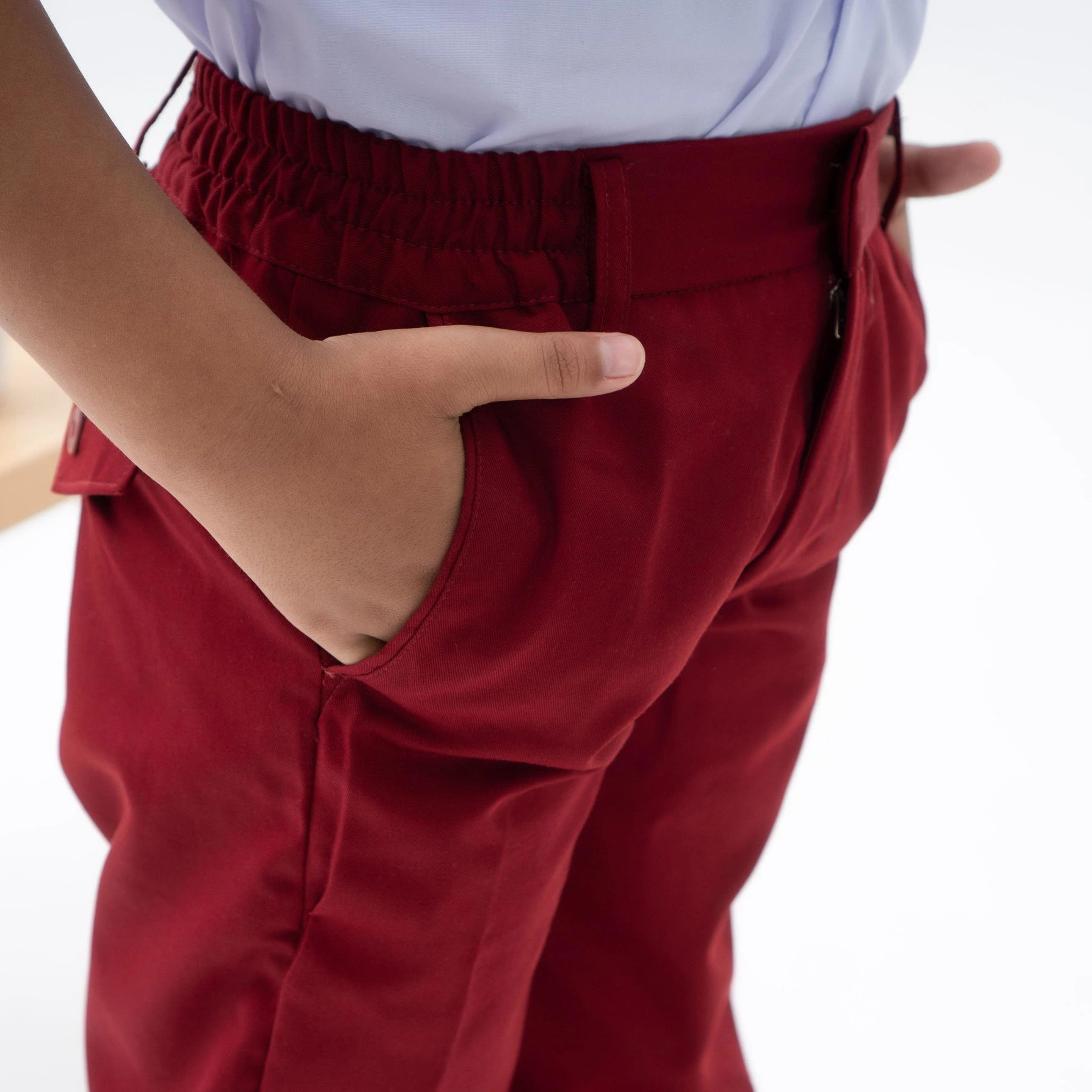Celana panjang sekolah tersedia dalam warna merah, biru dongker, dan abu-abu. Bahan berkualitas dengan jahitan kuat di bagian saku dan pinggang. Model standar yang rapi dengan ukuran lengkap untuk semua tingkat.
